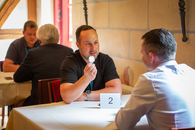 Um 12:30 Uhr ging es wieder los mit der ersten Runde SpeedConnection, die wieder Bernd Reinshagen aktiv umsetzte. Insgesamt 48 Teilnehmer waren in den drei Runden dabei, um Kontakte zu knüpfen oder zu vertiefen.
